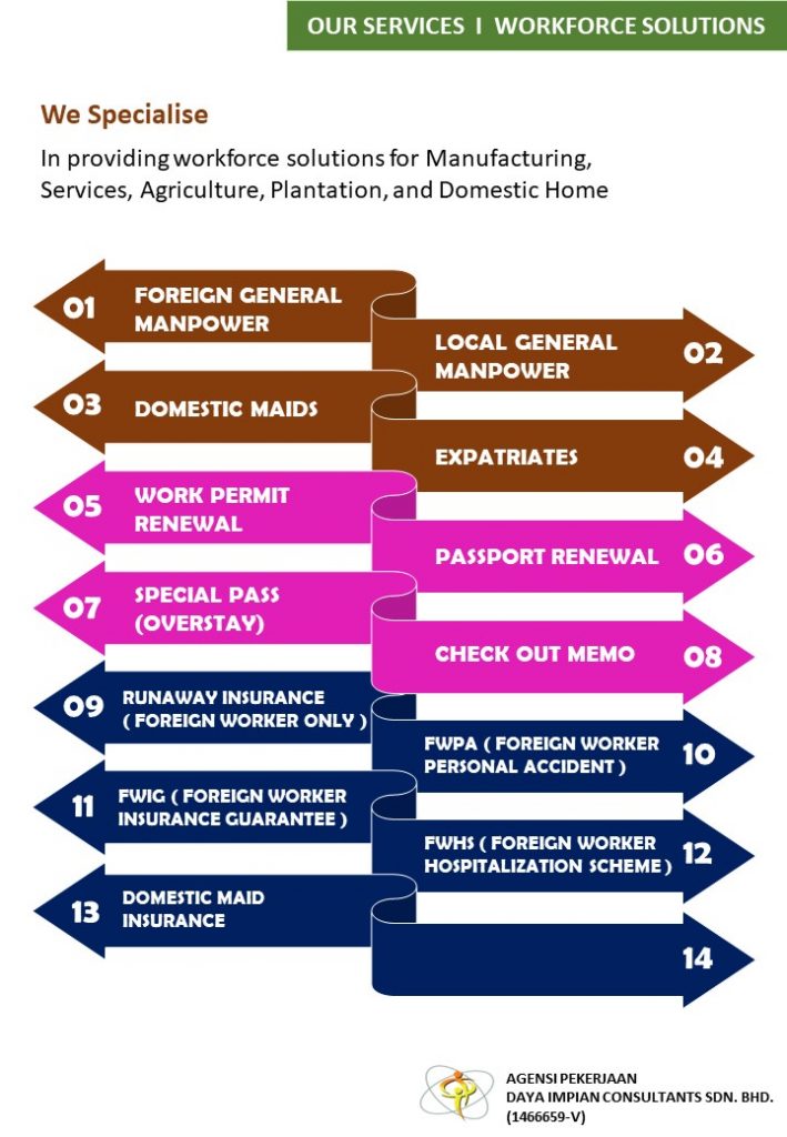 Agensi Pekerjaan Daya Impian Consultants Sdn Bhd handles the recruitment of local employees of the Malaysian National level such as factory workers, restaurants, and others at the request of an organization.